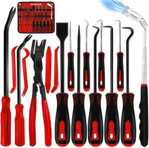 - Features: 7 pcs car door panel removal tool ,1 pcs fastener remover ,and 4 pcs Automotive Hook Set(1pc Scratch Awl, 1pc 90 Degree Hook, 1pc Complex Hook, 1pc Curved Hook), false, 1