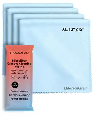 Elite Screens Microfiber Cleaning Cloth - 12" x 12", 4-Pack, Blue - Oversized Screen Cleaning Cloth - Streak-Free Glasses Wipes - Scratch-Resistant Lens Wipes for Eyeglasses