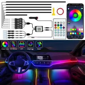 Interior Car LED Strip Lights, Acrylic LED Lights for Car with Dynamic Dreamcolor Chasing, Ambient Lighting Kits Music Sync Wireless APP and RF Remote Control (10 in 1)