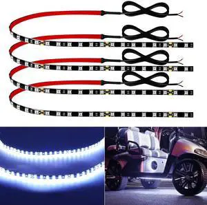 12V Led Light Strip 24" Connectable White Led Strip Lights for Cars Golf Cart Motorcycle Boat Trucks Waterproof Interior& Exterior, 4Pack