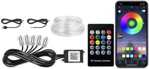 Interior Car Lights, SAMGCHI USB Car LED Strip Lights, Car Ambient Lighting Kit with 236 inches Fiber Optic, RGB EL Wire Lights APP and RF Remote Control Music Sync and DIY Mode DC 12V