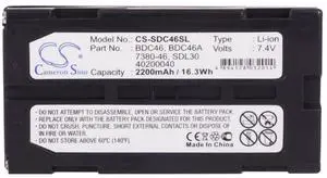 Cameron Sino Battery for Samsung SMX-C14, SMX-C10, SMX-C20, SMX-C24, SMX-K40, SMX-K44, SMX-K45, HMX-W300, and others 1300mAh/4.8Wh