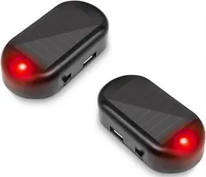 Car Solar Power Simulated Dummy AlarmAnti-Theft LED Flashing Security Light Fake lampwith USB Charger Portcar security Accessories Universal for Most Cars(2pcs Red)
