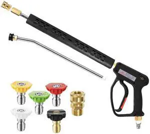 YAMATIC Pressure Washer Gun 5000 PSI - 3/8" Swivel Plug & M22-14mm Coupler, Power Washer Extension Wand Trigger Handle with 1/4" Quick Connect for Foam Cannon Car Wash