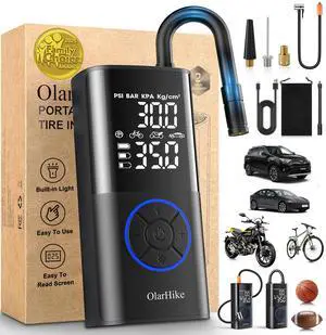 OlarHike Tire Inflator Portable Air Compressor, Smart Dual Hose System, 160PSI Auto Air Pump for Car Tires, Bike,Bicycle, Motorcycles,Electric Pump with LED Light & Digital Pressure Gauge