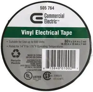 Commercial Electric 3/4 in. x 60 ft. x 7 mil Vinyl Electrical Tape, Black# 30002652 # 505764