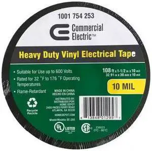 Commercial Electric 1-1/2 in. x 108 ft. Heavy Duty Tape, Black# 30005338 # 1001754253
