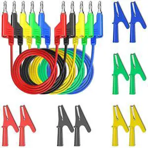 KEHIPI Multimeter Banana Plug to Crocodile Alligator Clip Test Probe, 5PC 4mm Stackable Colorful Silicone Banana Plug to Alligator Clip Test Probe Lead Wire Cable 9.8Ft/3M