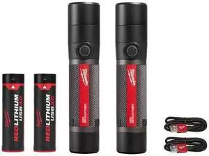 Milwaukee 800 Lumens LED USB Rechargeable HP Fixed Focus Flashlight (2-Pack) # 2160-21-2160-21 # 1006597300