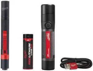 Milwaukee 800 Lumens LED USB Rechargeable HP Fixed Focus Flashlight and 100 Lumens Aluminum Pen Light with Clip (2-Pack) # 2160-21-2105 # 1007578766