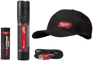 Milwaukee 800 Lumens LED USB Rechargeable HP Fixed Focus Flashlight with GRIDIRON Black Adjustable Fit Trucker Hat # 2160-21-505B # 1007169304