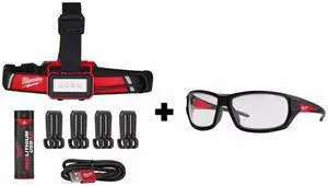 Milwaukee 600 Lumens LED REDLITHIUM USB 360-Degree Visibility Hard Hat Headlamp with Performance Safety Glasses # 2116-21-48-73-2020 # 1009480851