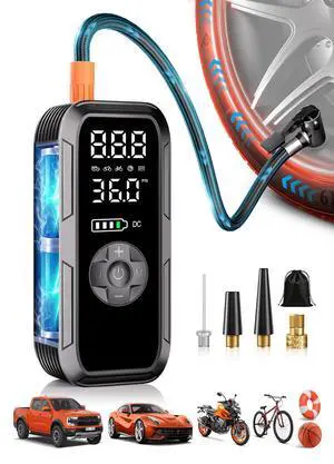 Tire Inflator Portable Air Compressor Cordless Air Pump with Digital Tire Pressure Gauge, Accurate Dual LCD Display & LED Light, for Car/Motorcycle/E-Bike/Ball