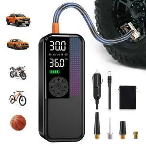 Tire Inflator Portable Air Compressor, 150PSI Air Compressor for Car Tires, Cordless Bike Pump with Pressure Gauge & LED Light, Tire Pump for Cars, Motorcycles, Bikes, Balls