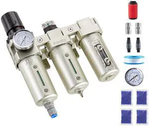 Air Compressor Filter Regulator, 1/2" NPT 3-Stage 5m & 0.3m & 0.1m Air Drying System with Micron Filters and Desiccant Dryer, Auto Drain Air Compressor Water Separator 175PSI Max Pressure