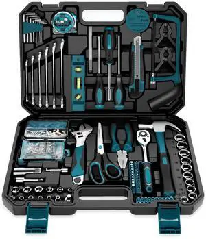 160-Piece Home Repair Tool Set, General Household Hand Tool Kit with Toolbox Storage Case for House, Garage, College Dorm and Office (Blue)