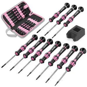 GRENPRO 10-Piece Precision Screwdriver Set, Magnetic Small Screwdrivers with Phillips, Slotted, Torx Star for Eyeglass, Watch, Computer, Laptop, Phone,Pink