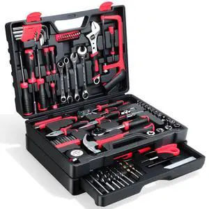 - Includes: Toolbox, Combination Wrenches, Hammer, Pliers, Screwdrivers, Precision Screwdrivers, Hex Keys, Sockets, Bits, Tape Measure, Utility Knife, Fastener Kit