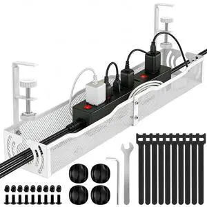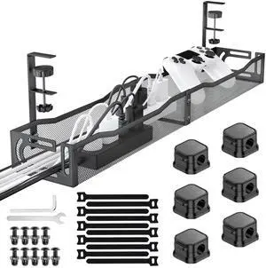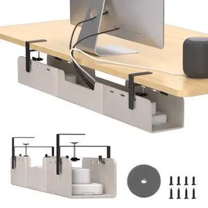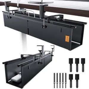Under Desk Cable Management Tray Storage with Clamp for Wire Management Cord Organizer No Drill 28.3" for Office Home