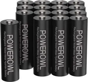 POWEROWL AA Rechargeable Batteries, 2800mAh High Capacity Batteries 1.2V NiMH Low Self Discharge, Pack of 16