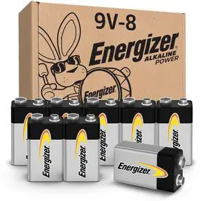 Energizer Alkaline Power 9 Volt Batteries (8 Pack), Long-Lasting Alkaline 9V Batteries