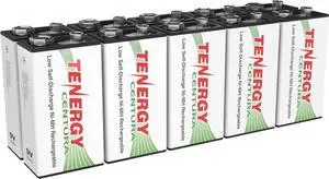 Tenergy Centura 9V NIMH Rechargeable Batteries, 200mAh Low Self-Discharge Square Battery for Smoke Alarm/Detector, 10 Pack