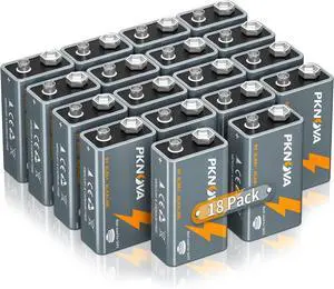 PKNOVA 9V Batteries Alkaline 9 Volt Square Battery for Smoke Detector, Long-Lasting, 18 Count Pack