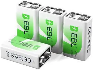 EBL 9V Rechargeable Batteries NiMH Everyday 280mAh 9V Battery for Smoke Alarm Detector, 4-Packs