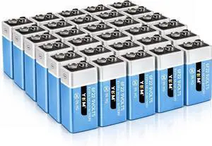 YKM 24 Pack 9V Batteries 9 Volt Battery for Smoke Detector Guitar Garage Door Opener Guitar Pedals Smoke Alarm Battery