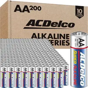 ACDelco 200-Count AA Batteries, Maximum Power Super Alkaline Battery, 10-Year Shelf Life, Recloseable Packaging