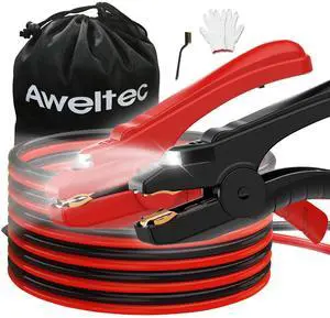 Heavy Duty Jumper Cables,6 Gauge 16 Feet Booster Battery Cable,Automotive Wires with LED Light,Alligator Clips,Carrying Bag,Safety Gloves and Iron Brush for Cars Truck