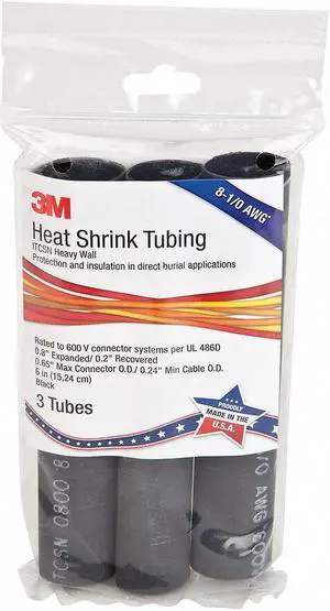 3M ITCSN-0800-6"-BLACK-12-3 PC PKS Adhesive Lined Heat Shrink Tube, Heavy Wall,