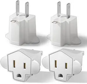 Portable 3 Prong to 2 Prong Outlet Adapter, Fireproof 392 3-2 Prong Adapter Converter, Heavy Duty Wall Plug Adapter for Household Appliances Industrial, 1875W Max, 4 Packs