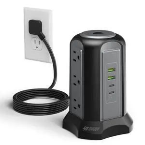 Tower Power Strip Surge Protector with 16 Outlets and 5 USB Ports (2 USB-C), 6FT Extension Cord with Multiple Outlets,Heavy Duty Charging Station,Home Office Dorm Room Essentials. No Wireless Charging
