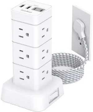 Power Strip Tower Surge Protector with 16 Outlets and 5 USB Ports (2 USB-C), 20FT Extension Cord with Multiple Outlets,Heavy Duty Charging Station,Home Office Dorm Room Essentials.No Wireless Charging