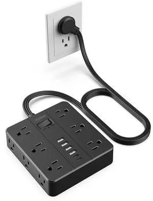Power Strip Surge Protector, Flat Plug Extension Cord with 8 Outlets 3 USB Charger(1 USB C), 1080 Joules Protection, Wall Mountable Charging Station for Home Office School Dorm Room Essentials