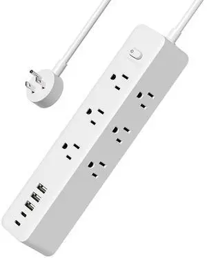 Surge Protector Power Strip - 6 Ft Flat Plug Extension Cord with 8 Widely Outlets and 4 USB Ports(1 USB C), 3 Side Outlet Extender for Home Office, White, ETL Listed