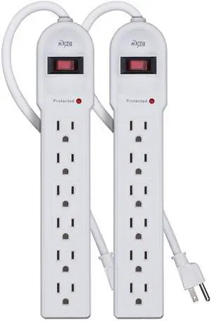6-Outlet Surge Protector Power Strip 2-Pack, Overload Protection, 4-Foot Cord, 900 Joule - White