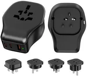 Universal Plug Adapter Kit with Type B/E/F/I/G Detachable Plug, Worldwide Power Socket with 2xUSB-C+1xUSB-A and 4 AC Outlets for US/Canada/AU/UK/Europe/China Travel Adapter (1 Pack Black)