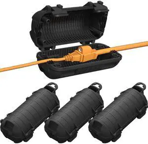 Flemoon Outdoor Extension Cord Safety Cover with Waterproof Protector Seal, Weatherproof Electrical Connection Box for Outdoor Outlets, Plugs, Sockets, Holiday Decorations, Power Tools, Black