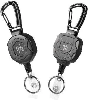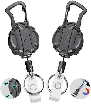 2Pack Heavy Duty Retractable Keychain, Unbreakable Embedded Body with 30.5" Dyneema Cord, Tactical ID Badge Holder Reel Carabiner Clip with Secure Magnetic Closure for Men, Holds 25oz