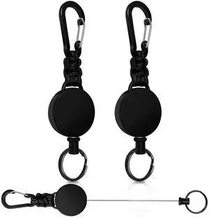 Retractable Keychain 2 Pack Heavy Duty Carabiner Badge Holder, Tactical ID Badge Reel Retractable Key Ring with 60 cm Steel Extendable Cord and Paracord (Black + Black)