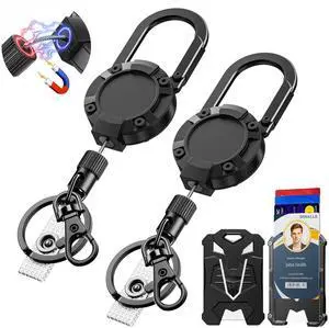 Retractable Keychain with Magnetic Closure, Heavy Duty Carabiner Badge Holder, ID Badge Reel with 26 Steel Retractable Cord, 18 oz