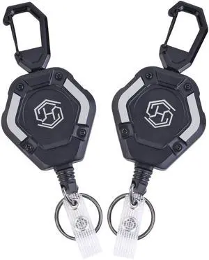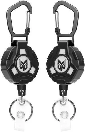 2-Pack Retractable Keychain - Heavy Duty Badge Holder, ID Badge Reel, Carabiner Badge Clip, Tactical Key Chain with 32" Steel Retractable Cord, 8.0 oz
