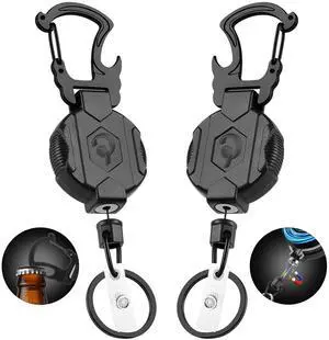 2 Pack Retractable Keychain, Multitool Carabiner Badge Holder, 8oz Retraction, Heavy Duty Badge Reel, Retractable Key Chain with Steel Cable and Key Ring, Black