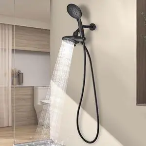 High Pressure Rain Shower Head with Handheld Combo - 2 Modes Fixed + 5 Modes Handheld Spray, Detachable Design, Built-in Magnetic Docking, Leakproof 6ft Hose, Chrome