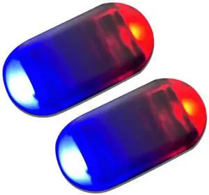 2Pack Solar Simulated Dummy Warning Lamp, Mini Anti-Theft LED Red Blue Flashing Alarm Security Car Fake Alarm Lamp,Automotive Interior Emergency Strobe Light for Bike Car Night Driving