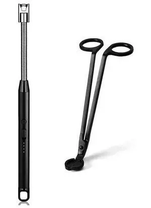 Rechargeable Candle Lighter and Wick Trimmer,Candle Accessory Set,Candle Wick Clipper Wick Cutter Scissor,Electric Rechargeable Arc Lighter Display USB Lighter-Black