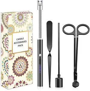 4 in1 Candle Accessory Set - Wick Trimmer, Candle Snuffer, Wick Dipper, Candle Lighters-Stainless Steel Care Kit for Candle Lover