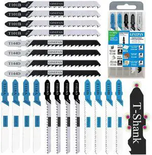20PCS T Shank Jigsaw Blades Tool for Wood Plastic Metal Compatible with 90% Power Jig Saws Such as Bosch DEWALT RYOBI One+ Makita SKIL Black+Decker Includes 4 Each of T101B T101AO T144D T118A & T118B